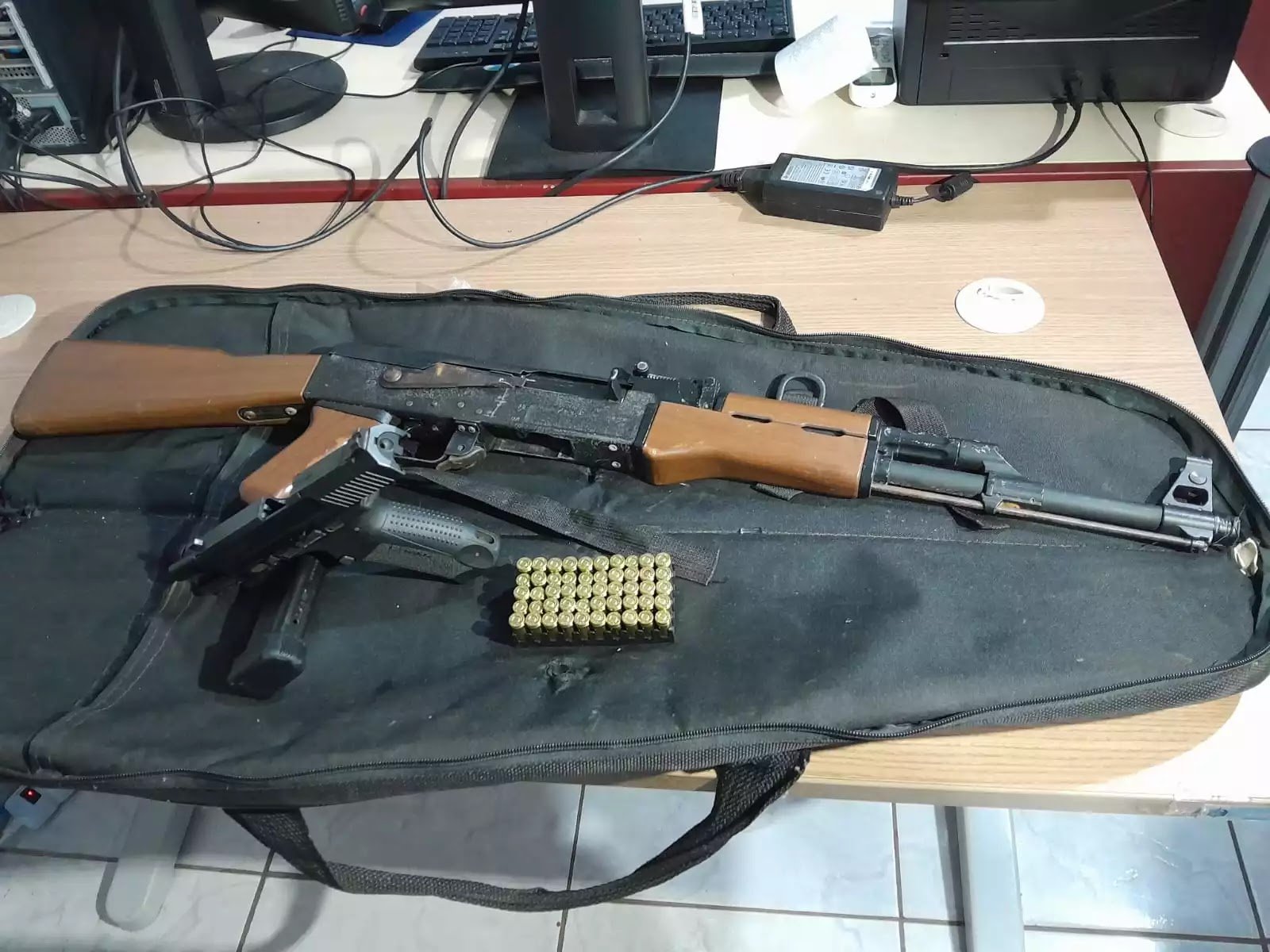 Com um dos investigados foi apreendida uma pistola calibre 9mm de fabricação Turca com diversas munições, assim como uma réplica de fuzil AK47 de airsoft.