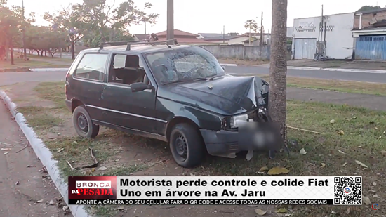 Motorista perde controle e colide Fiat Uno em árvore na Av. Jaru - Vídeo