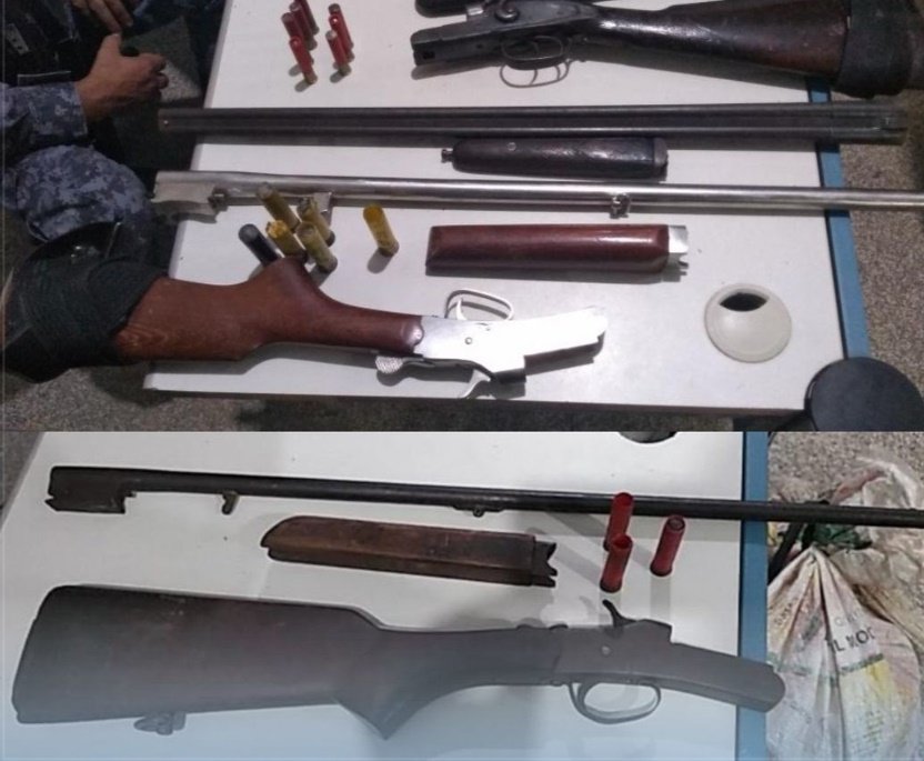 As abordagens foram realizadas na Linha C20. A primeira apreendeu uma espingarda calibre 22 e dois cartuchos, já na segunda, duas espingardas foram encontradas, sendo uma de calibre .36 e outra .20 e 12 munições. Das três armas, duas não tinham numeração, os proprietários das armas também não possuíam documentação necessária para porta o armamento. Diante do flagrante, as armas apreendidas e os três envolvidos foram apresentados à delegacia para medidas que o caso requer.