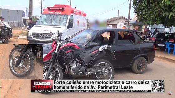 Forte colisão entre motocicleta e carro deixa homem ferido na Av. Perimetral Leste - Vídeo
