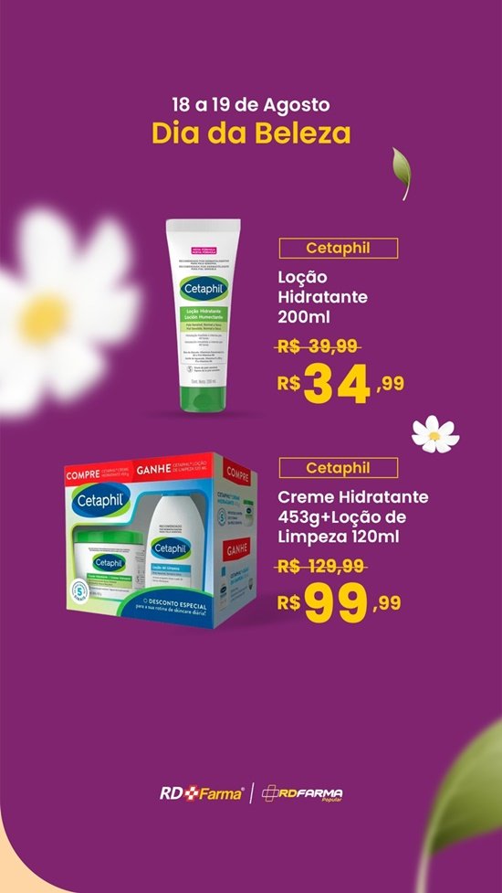 - Creme Hidratante 453g + Loção de Limpeza 120ml CETAPHIL de R$ 129,99 por R$ 99,99