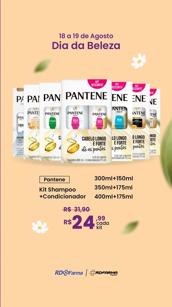 - Kit Shampoo + Condicionador 300ml + 150ml, 350 + 175 ml ou até mesmo 400ml + 175ml de R$ 31,90 por apenas R$ 24,99 cada kit