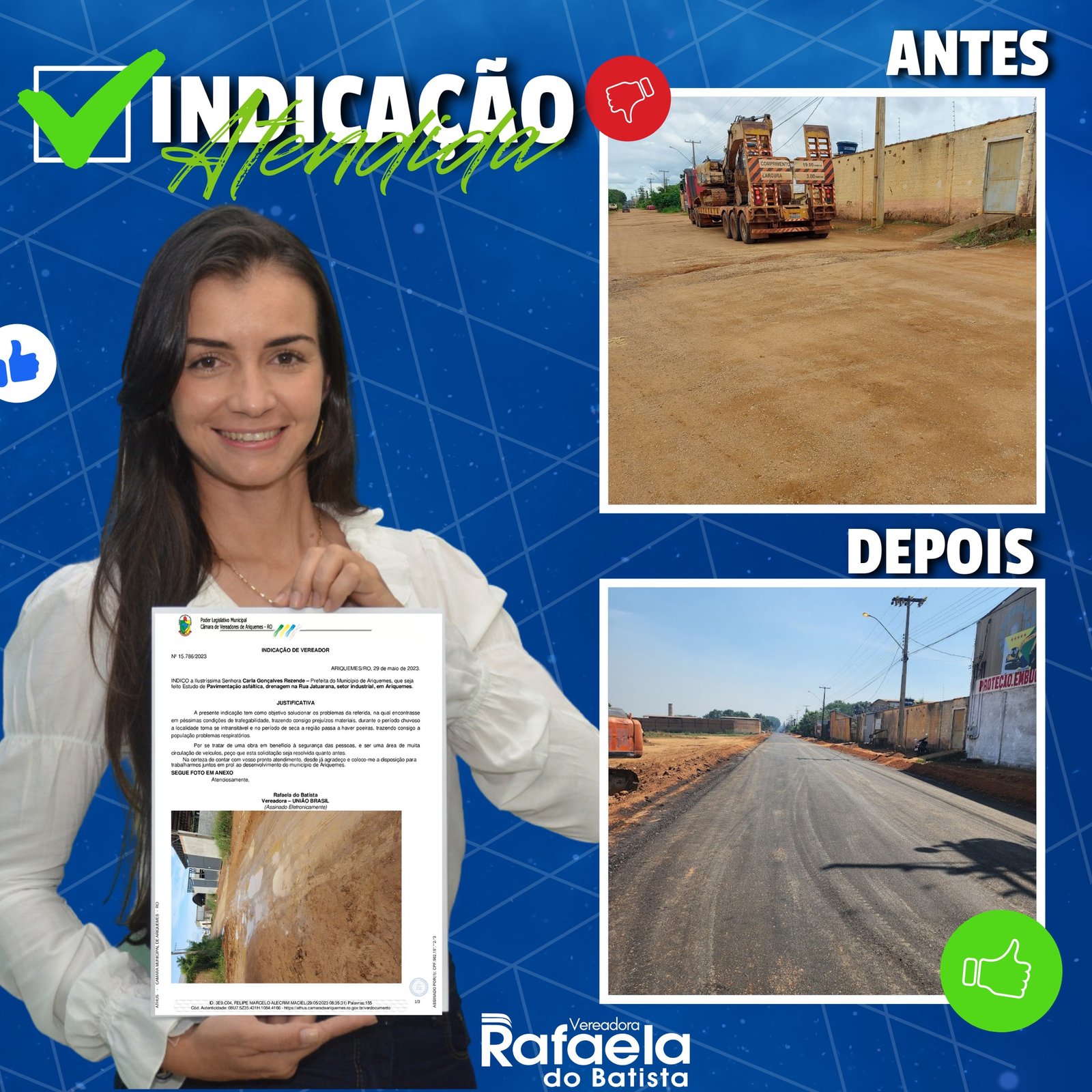 Solicitamos através da indicação 15.786/2023, para ser realizado serviços de pavimentação asfáltica na rua Jatuarana, no setor Industrial, com a execução deste serviço de pavimentação asfáltica na rua contribuirá com a trafegabilidade, segurança e a valorização dos estabelecimentos comerciais que se localizam.