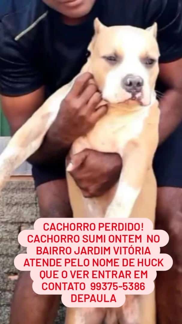 Desapareceu nessa quarta-feira, 20/09, da residência de seu dono localizada no Bairro Jardim Vitória em Ariquemes, este cachorro aparentemente da raça Pit Bull de pelagem marrom claro com algumas mechas em branco, olhos escuros e focinho também de cor preta, que atende pelo nome de Huck. O pet é um animal muito dócil e querido por seu dono que está muito aflito. Qualquer informação do paradeiro de Huck entre em contato pelo WhatsApp: (69) 9 9375-5386 De Paula.