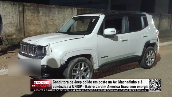 Condutora de Jeep colide em poste na Av. Machadinho e é conduzida à UNISP – Bairro Jardim América ficou sem energia - Vídeo