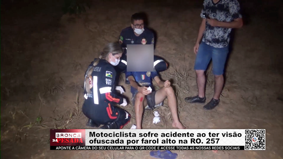 Motociclista sofre acidente ao ter visão ofuscada por farol alto na RO. 257 - Vídeo
