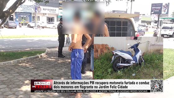 A Polícia Militar com auxílio da comunidade recuperou na manhã da última segunda-feira (02), em Ariquemes, uma motocicleta Honda Biz que havia sido furtada na noite anterior. Dois adolescentes foram conduzidos suspeitos de receptação e 15 gramas de entorpecente apreendidas.