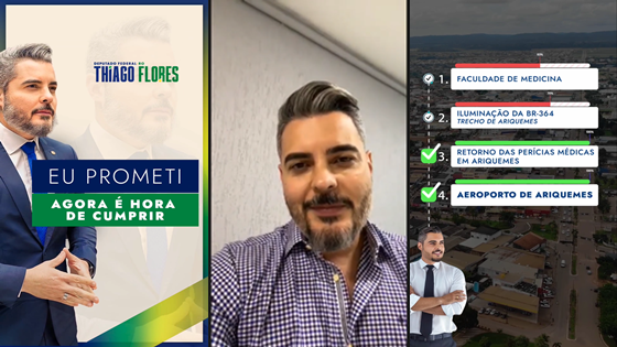 Em entrevista concedida ao Canal 35.1, o Deputado Federal Thiago Flores, traz boas notícias em relação às obras do Aeroporto de Ariquemes e parabeniza a cidade pelo seu 46º aniversário.