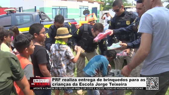 PRF realiza entrega de brinquedos para as crianças da Escola Jorge Teixeira - Vídeo