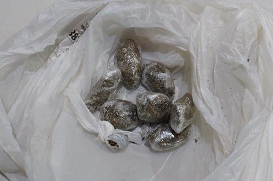 Mediante as suspeitas de terem mais drogas na casa e com a autorização da proprietária, foi feito uma busca na propriedade, vindo a localizar uma sacola no quintal da casa contendo oito invólucros de substância análoga a maconha.
