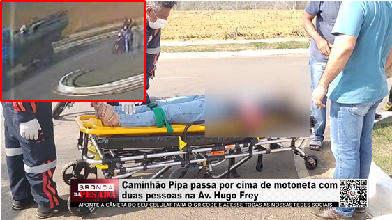 Caminhão pipa passa por cima de motoneta com duas pessoas na Av. Hugo Frey - Vídeo