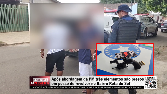Após abordagem da PM três elementos são presos em posse de revolver no Bairro Rota do Sol - Vídeo