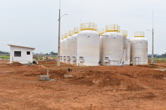 Todos os 15 tanques da nova estação já foram instalados, e as obras estão cerca de 80% concluídas, na fase das instalações elétricas e hidráulicas. Depois da obra finalizada, a estação terá capacidade de tratar 20 litros de efluentes por segundo, e atenderá inicialmente os setores 3,5 e BNH, que recebem as obras de implantação das redes coletoras de esgoto, e logo serão interligados ao novo sistema de esgotamento sanitário do município.