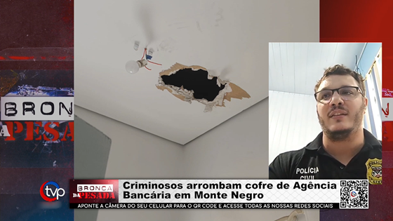Uma quadrilha invadiu uma agência bancária, arrombou os cofres no Município de Monte Negro (RO). O Delegado de Policia Dr. João Gustavo concedeu entrevista ao Canal 35.1, afirmando que a população pode ajudar de forma anónima através 197. Pela forma que os elementos agiram, são profissionais e ficaram no interior da agência por mais de 3 horas. Confira reportagem.