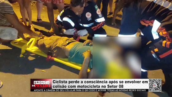 Ciclista perde a consciência após se envolver em colisão com motocicleta no Setor 08 - Vídeo