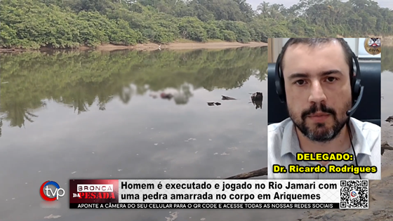 O Delegado de Polícia Regional Dr. Ricardo Rodrigues concede entrevista ao Canal 35.1, e fala sobre homem encontrado morto no Rio Jamari atrás do Bairro Marechal. Vítima estava com pés amarrados envolta de uma pedra, além de perfuração de arma de fogo no queixo e corte de faca na barriga. Polícia Civil assume investigação.