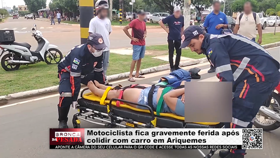 Motociclista fica gravemente ferida após colidir com carro em Ariquemes - Vídeo
