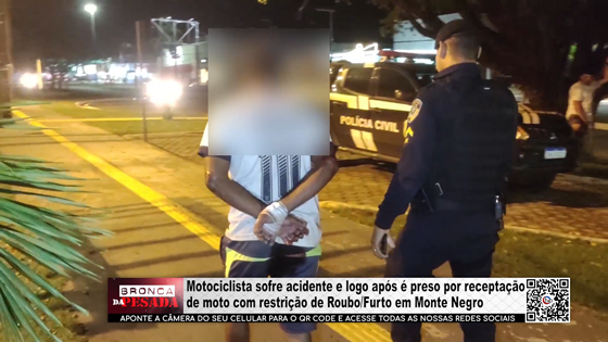 Motociclista sofre acidente e logo após é preso por receptação de moto com restrição de Roubo/Furto em Monte Negro - Vídeo