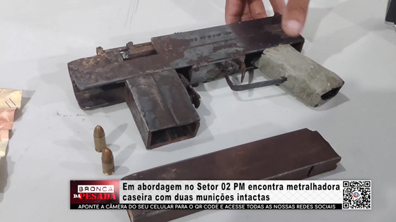 Durante o patrulhamento noturno de sábado, 9, em Ariquemes, uma guarnição de radiopatrulha apreendeu uma arma de fogo de fabricação artesanal, tipo metralhadora. Um homem foi detido.