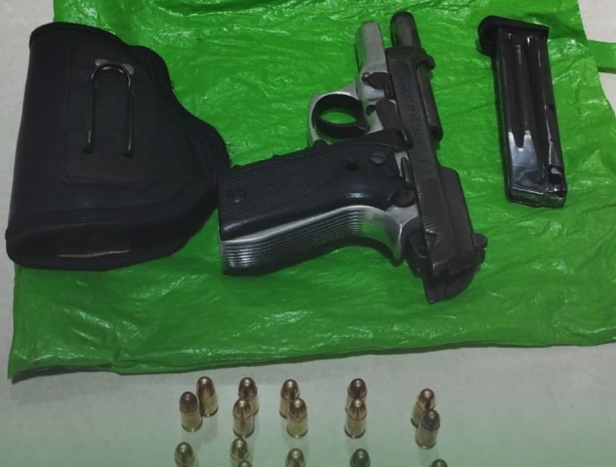 Informado sobre a busca no veículo, o motorista consentiu, assegurando que nada seria encontrado. Contudo, durante a inspeção, uma pistola modelo Taurus PT 57SC CALIBRE 765MM, sem numeração de identificação, foi descoberta. A arma estava municiada com um carregador contendo 10 munições intactas, e outras 10 munições estavam em uma sacola verde sob o banco do passageiro.