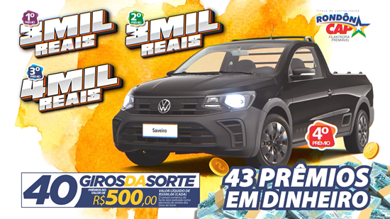 Domingo tem a Nova saveiro, 43 prêmios em dinheiro e o título só 10 reais! Ajude as Apaes, participe e boa sorte!