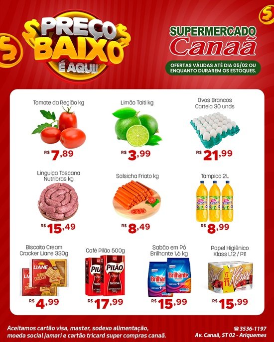 Prepare-se para economizar de verdade no seu supermercado favorito! Este final de semana, o Supermercado Canaã está oferecendo descontos incríveis em uma variedade de produtos para tornar sua compra ainda mais especial.