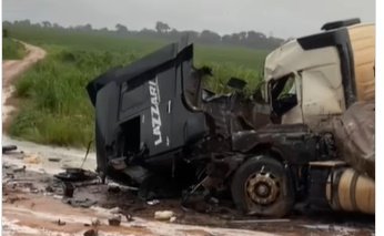 Duas pessoas ficaram feridas após uma colisão frontal entre duas carretas na BR-364. O acidente aconteceu na tarde deste domingo (04) entre Ariquemes (RO) e Itapuã (RO) próximo da Fazendinha.