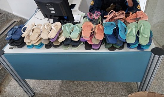 Em uma averiguação numa casa abandonada muito utilizada por usuários de drogas no bairro Setor 11, uma equipe policial encontrou uma caixa de papelão cheia de chinelos, contendo 55 pares e ao questionar de quem seria os calçados, um individuo disse que ele teria furtada de madrugada os chinelos em um estabelecimento que achava que estava abandonado.