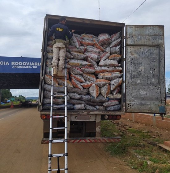 Rondônia, 04/03/2024 - A Polícia Rodoviária Federal (PRF) em Rondônia, no último domingo (03), realizando atividade de fiscalização ambiental na BR 364, próximo ao km 519, no município de Ariquemes/RO, identificou um carregamento de carvão vegetal sendo transportado de modo contrário à legislação vigente.