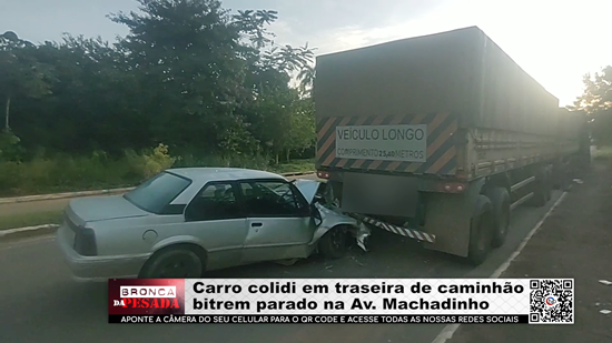 Carro colidi em traseira de caminhão bitrem parado na Av. Machadinho - Vídeo
