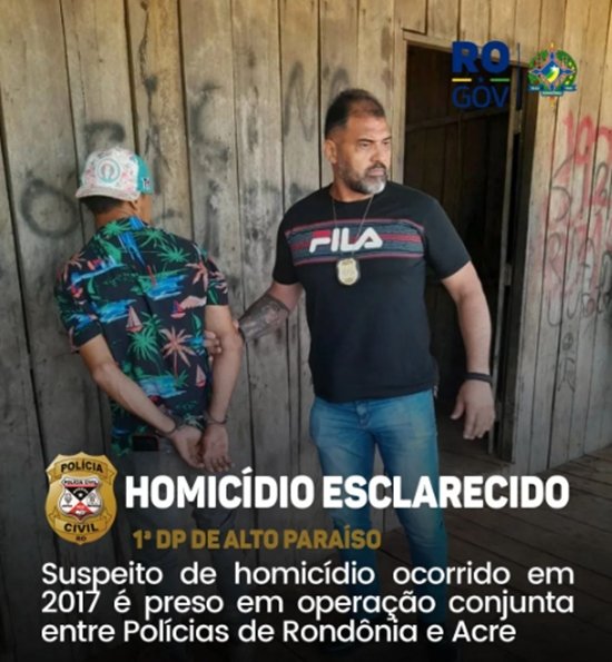 A operação conjunta entre as delegacias de Rondônia e do Acre resultou na prisão do investigado, que estava foragido desde o ano de 2023, quando foi identificado como autor do crime ocorrido em 26 de novembro de 2017, na zona rural de Alto Paraíso/RO.