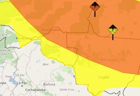 Considerado o segundo mais perigoso, o Alerta laranja foi emitido para parte do estado, incluindo Porto Velho, nesta sexta-feira (5) e seguindo até às 10h da manhã deste sábado (6).