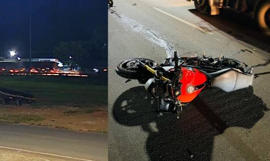 Uma câmera de monitoramento gravou o exato momento em que um moto é arrastada na BR-364, em meio a faíscas, após colidir com outra moto. Segundo informações, o condutor da moto Yamaha MT-09, laranja, de 847 cilindradas teria colidido com a traseira de uma moto CG Titan conduzida por um entregador. A colisão foi tão violenta que a Yamaha foi se arrastando por vários metros, soltando faísca devido ao atrito com o asfalto. Na Yamaha além do condutor um passageiro estava na garupa. Os três feridos foram socorridos e encaminhados ao Hospital Regional pelo Corpo de Bombeiros.