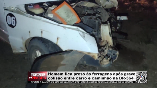 Homem fica preso às ferragens após grave colisão entre carro e caminhão na BR-364 - Vídeo