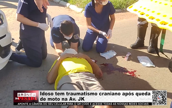 Idoso tem traumatismo craniano após queda de moto na Av. JK - Vídeo