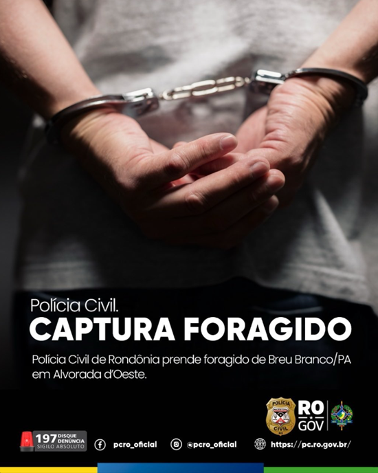 A operação de captura é resultado do trabalho da Polícia Civil, que continua empenhada em garantir a segurança pública e combater a criminalidade em Alvorada d’Oeste e região.