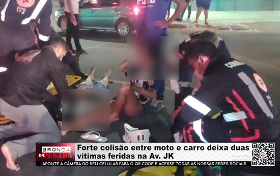 Forte colisão entre moto e carro deixa duas vítimas feridas na Av. JK - Vídeo