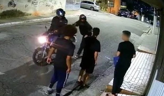 As vítimas disseram que estavam indo para casa na hora em que dois criminosos em uma motocicleta Honda Fan de cor preta se aproximaram.