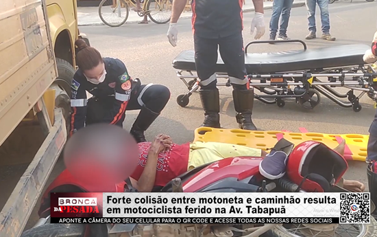 Forte colisão entre motoneta e caminhão resulta em motociclista ferido na Av. Tabapuã - Vídeo