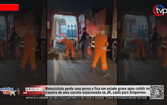 Motociclista perde uma perna e fica em estado grave após colidir na traseira de uma carreta estacionada na JK, saída para Ariquemes - Vídeo