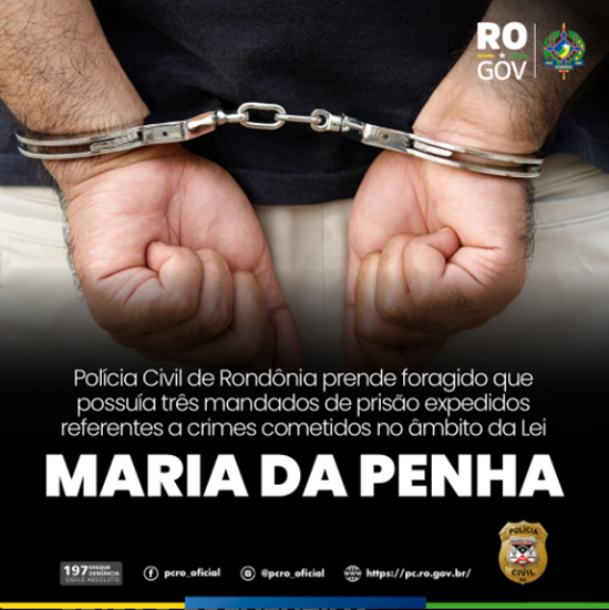 Na tarde desta quarta-feira (18), a Polícia Civil de Rondônia, por meio da Central de Registro de Ocorrências, prendeu E.C.S., 77 anos, que estava foragido e possuía três mandados de prisão expedidos pela comarca de Tarumirim, no estado de Minas Gerais. Todos os mandados de prisão são referentes a crimes cometidos no âmbito da Lei Maria da Penha.