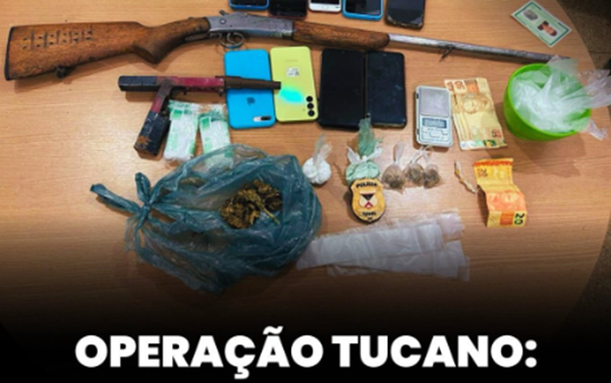 Durante as buscas, foram presos G.S.T., por posse de drogas, arma de fogo e material de tráfico, e W.J.Y., que possuía dois mandados de prisão em aberto. Na residência de G.S.T., foram apreendidos uma arma artesanal, drogas, uma balança de precisão, embalagens para entorpecentes e dinheiro em espécie. Já na casa de M.S.G., foi encontrada uma espingarda e um motosserra, este último identificado como produto de furto.