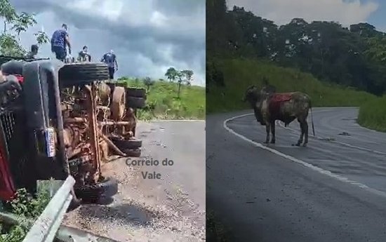 As circunstâncias que levou o caminhão tombar ainda são desconhecidas, mas é possível ver um boi ferido no meio da rodovia, e dentro dentro da carroceria, é possível ver nas imagens enviadas para o Correio do Vale, que havia animais vivos.