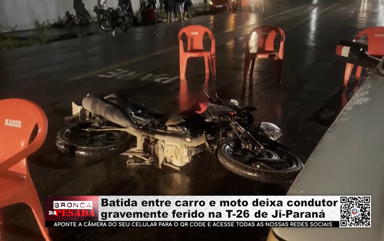 Batida entre carro e moto deixa condutor gravemente ferido na T-26 em Ji- Paraná - Vídeo
