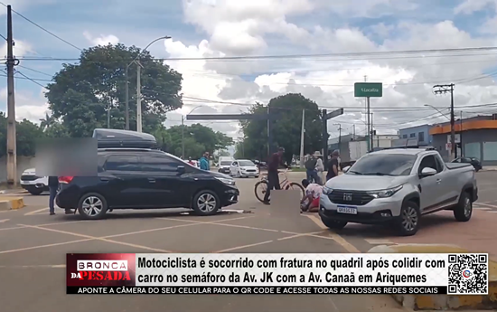 Motociclista é socorrido com fratura no quadril após colidir com carro no semáforo da Av. JK com a Av. Canaã em Ariquemes - Vídeo