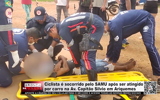 Ciclista é socorrido pelo SAMU após ser atingido por carro na Av. Capitão Silvio em Ariquemes - Vídeo