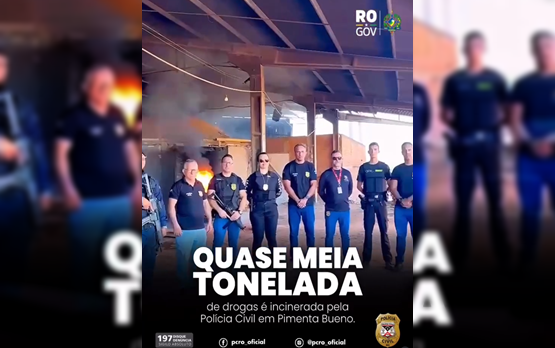 A Polícia Civil de Rondônia realizou, nesta terça-feira (15), a incineração de aproximadamente meia tonelada de entorpecentes apreendidos ao longo do ano de 2025 no município de Pimenta Bueno e região.