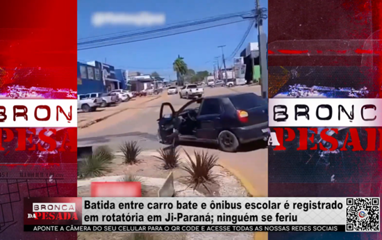 Colisão entre auto e ônibus escolar é registrado em rotatória em Ji Paraná - Ninguém se feriu - Vídeo
