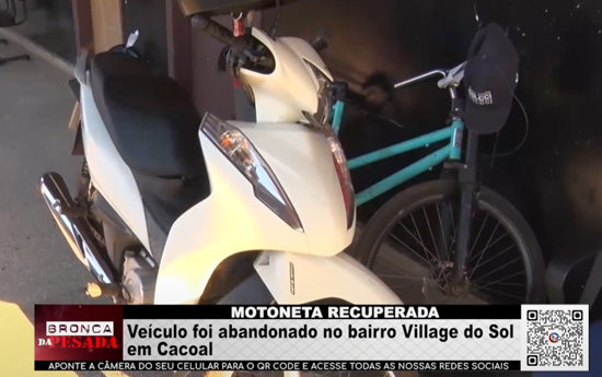 MOTONETA RECUPERADA - Veículo foi abandonado no bairro Village do Sol em Cacoal - Vídeo