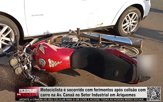 Motociclista é socorrido com ferimentos após colisão com carro na Av. Canaã no Setor Industrial em Ariquemes - Vídeo